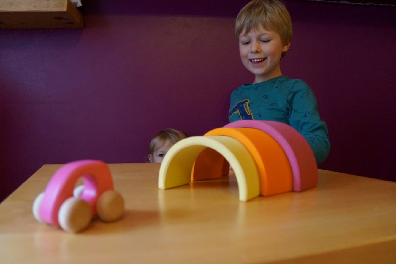 Oren still shamelessly enjoys playing with cars, I hope he doesn’t grow out of this any time soon. Loki and Oren have been playing really well recently, especially with the Bajo Cars. Last weekend Oren set up the Grimms Tunnel and was firing cars across the table to Loki, who, in turn was firing them back. It was hilarious…