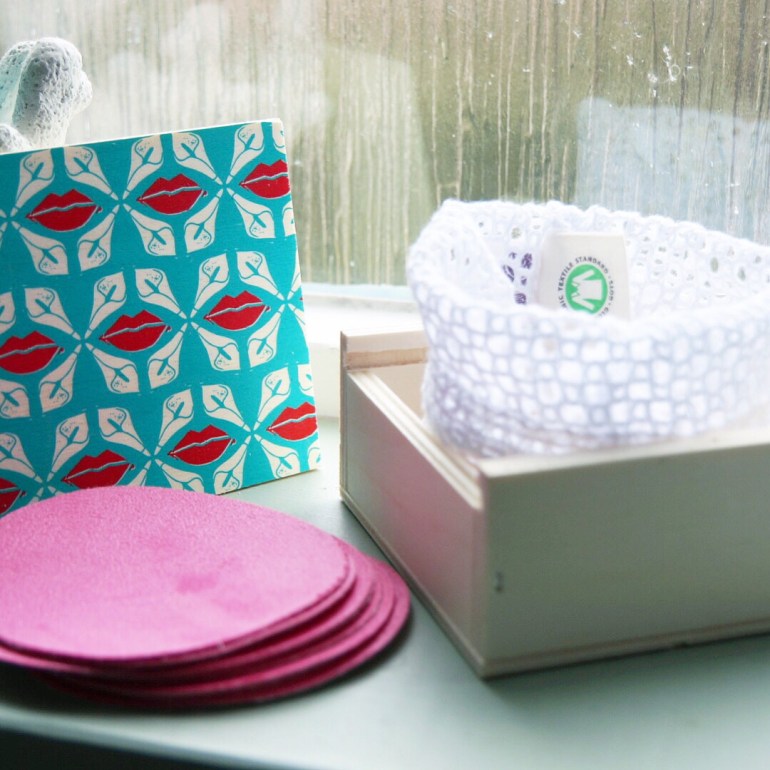 I like the Lamazuna cloth pads to remove eye make up and freshen up with. They wash really well and the wee laundry bag they come with (as well as the gorgeous box) is very handy!