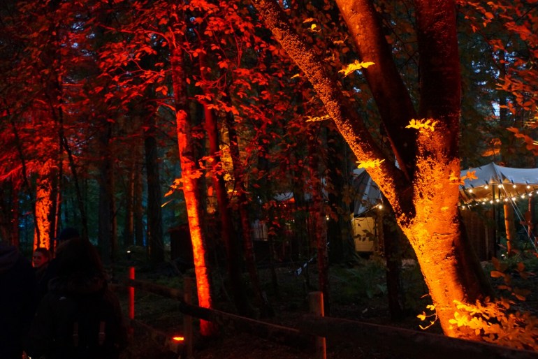 It was still quite light when we wandered down into the forest. Managed to get short changed and slightly conned into make a charitable donation buying glow sticks, which was frustrating, even more so when they didn’t work, but the darkening skies kept our moods high.