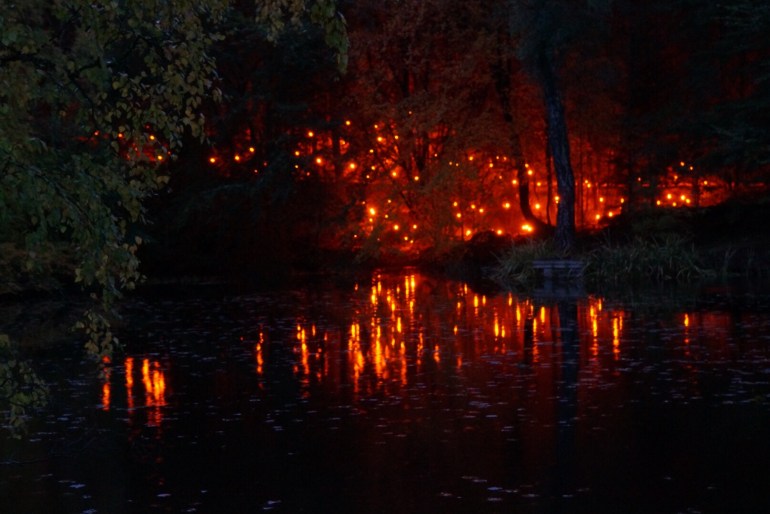 After the bridge crossing we walked round and down into a woodland floor covered in flickering candle lights. This was Edward’s favourite part of the forest and from across the other side of the Loch it was pretty stunning glimmering away.