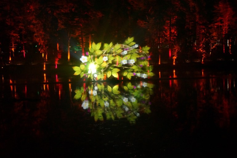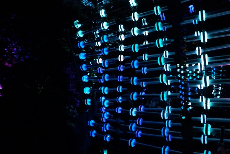 In the next section we saw giant balls of light all the way up the tallest trees in the forest. Oren said they looked like tentacles as they lit up and changed colours whilst dancing to music.