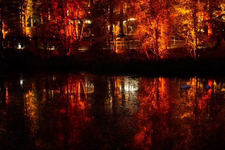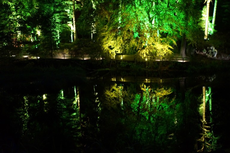 The forest burst into life in a new way once it was dark. The paths took on a magical glow and the reflections in the water (even with the rain) made for the most beautiful scenes.