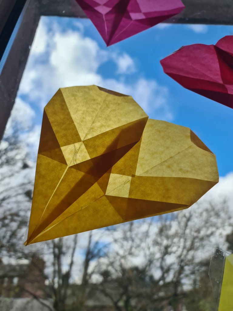 Hello lovelies, thought I’d share this super quick ‘how to’ guide for our folded paper heart window display.