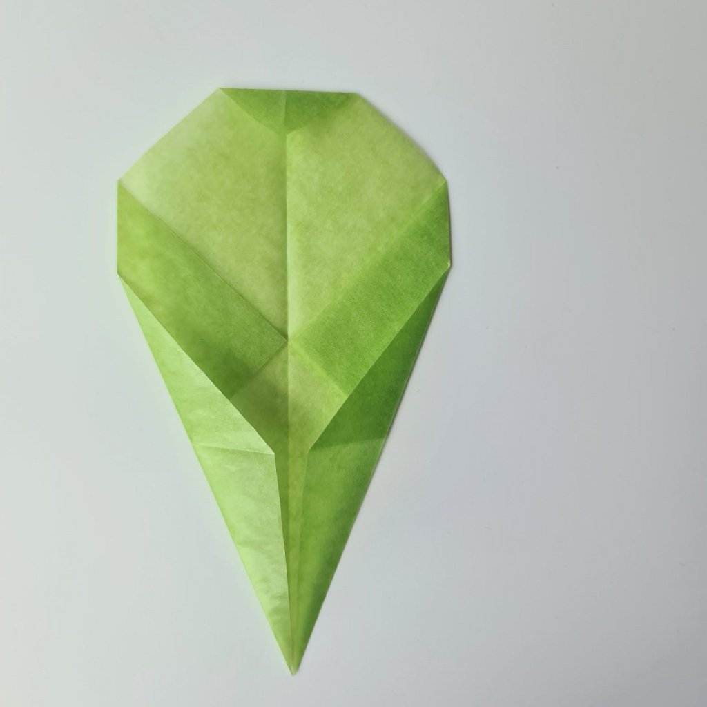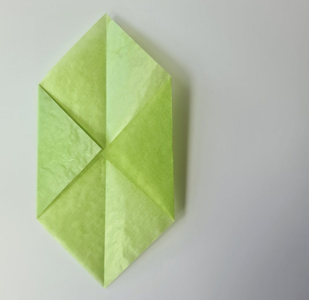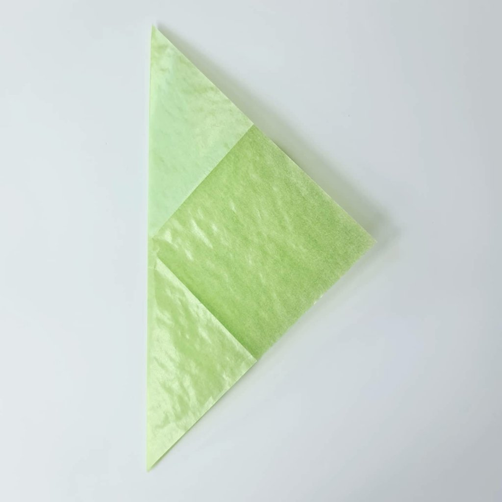 Now fold it diagonally in half, great for littles to join in with, watch out for the tongue of concentration at this point!