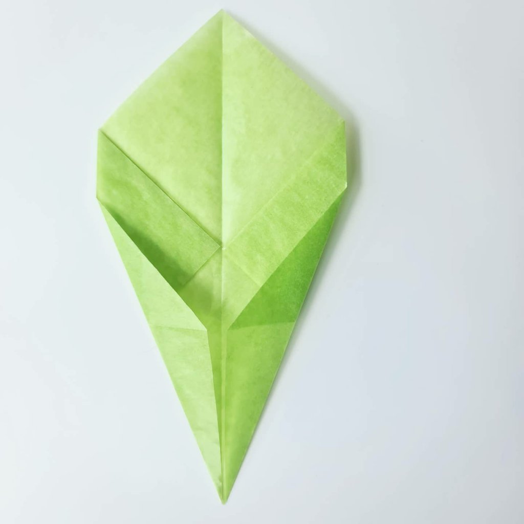 Then you fold the bottom left corner to meet the centre fold line. The neater you do this the better it will look.